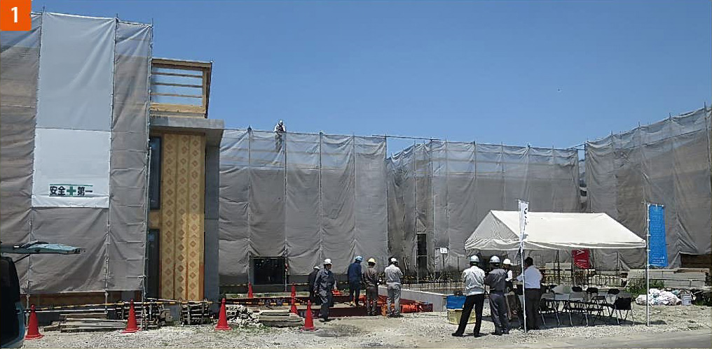 実験が行われたのは、古閑中町にあるRCキュービックの現場です。実験当日は天候に恵まれ、澄みわたる空のもと実験は始まりました。